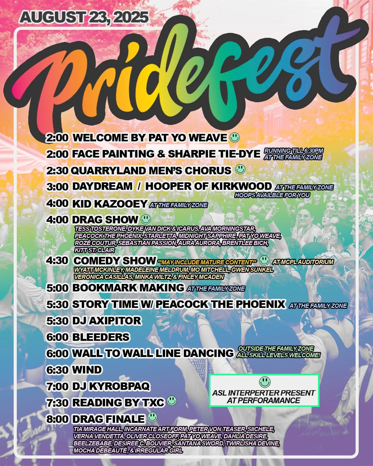 Bloomington Pride extends our deepest gratitude to our volunteers, community members, entertainers, vendors, and sponsor partners. 2025 will be the biggest and best Pridefest yet, and we owe it all to you!
